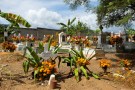 Grave sites at San Pedro del Rincón are covered in arrangements of marigolds and a local flower known as “cresto del gallo” (rooster’s comb). — at San Pedro del Rincón, Oaxaca.