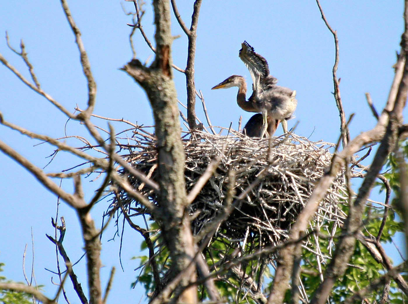 Out at the local heron rookery lots of new families are busy with little ones. Here are two photos of heron chicks that were taken in the last week. Be sure to click on the photos for larger sizes. I hope you like them.