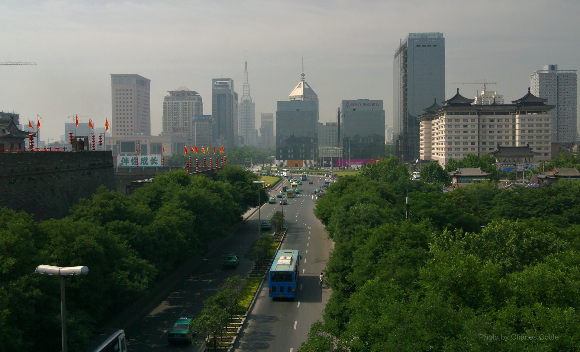 When the elevator door opened, I emerged on to a well-lit, sunny floor with tall glass panels everywhere along the exterior wall. Chairs and tables with white tablecloths were placed alongside the windowed wall that overlooked the city of Xi’an. As it turned out, this was a revolving restaurant. Later investigation revealed that revolving restaurants are popular in Xi’an and a number of hotels have them.